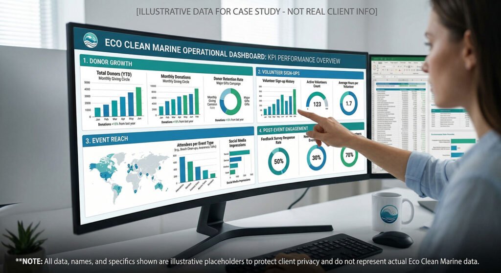 Streamlining donor databases and social calendars to increase volunteer participation and clean-up awareness.