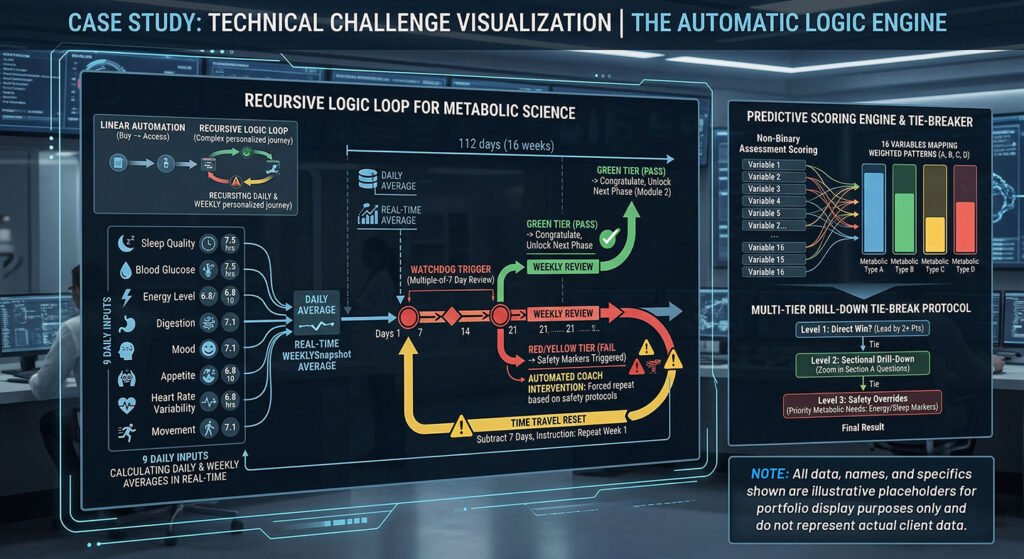 Architecting a complex 16-week logic with recursive stability layers, engineered for precision biological marker tracking and data analysis.